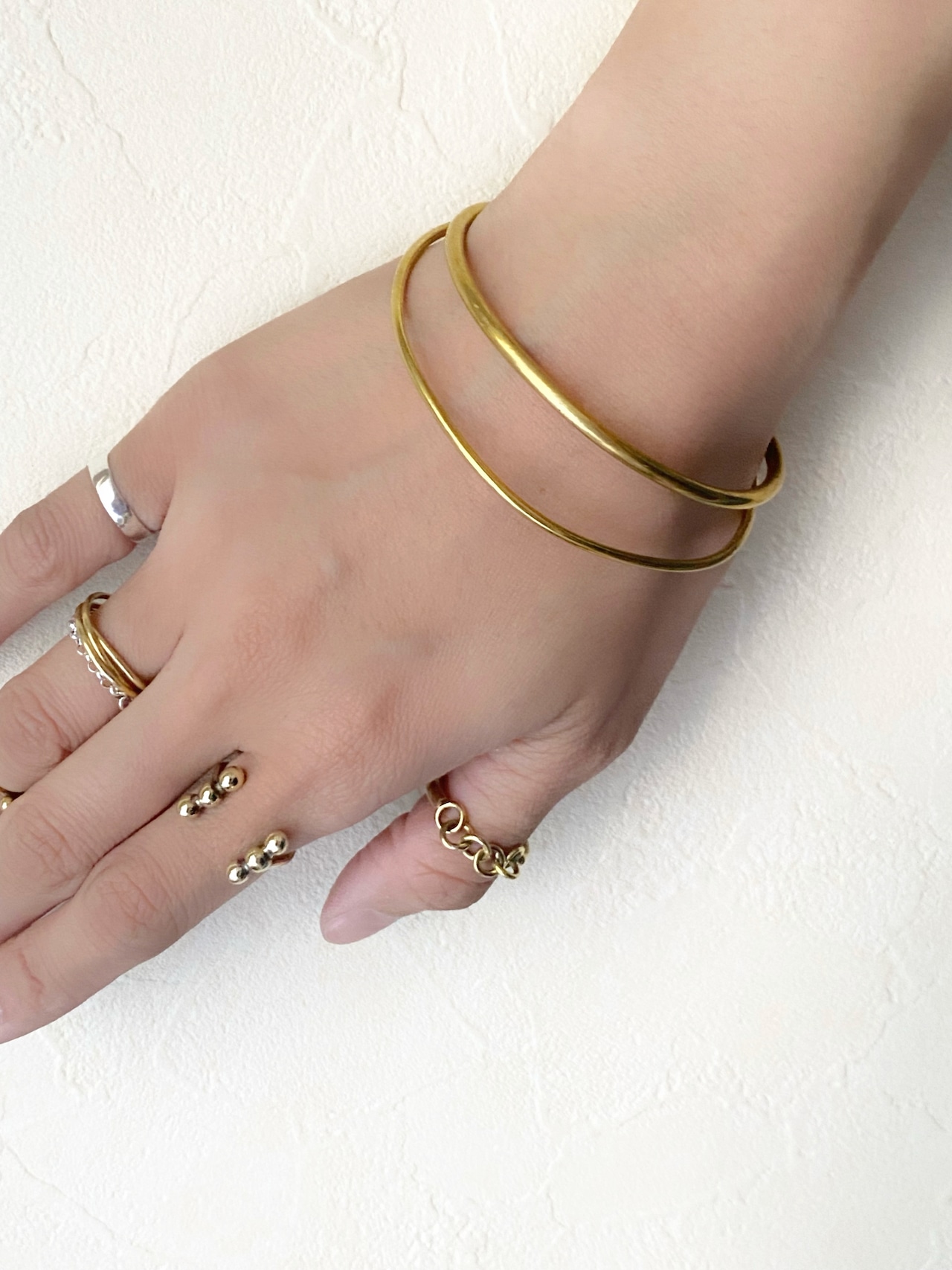 真鍮素材のバングルは、高級感あふれる仕上がり。
