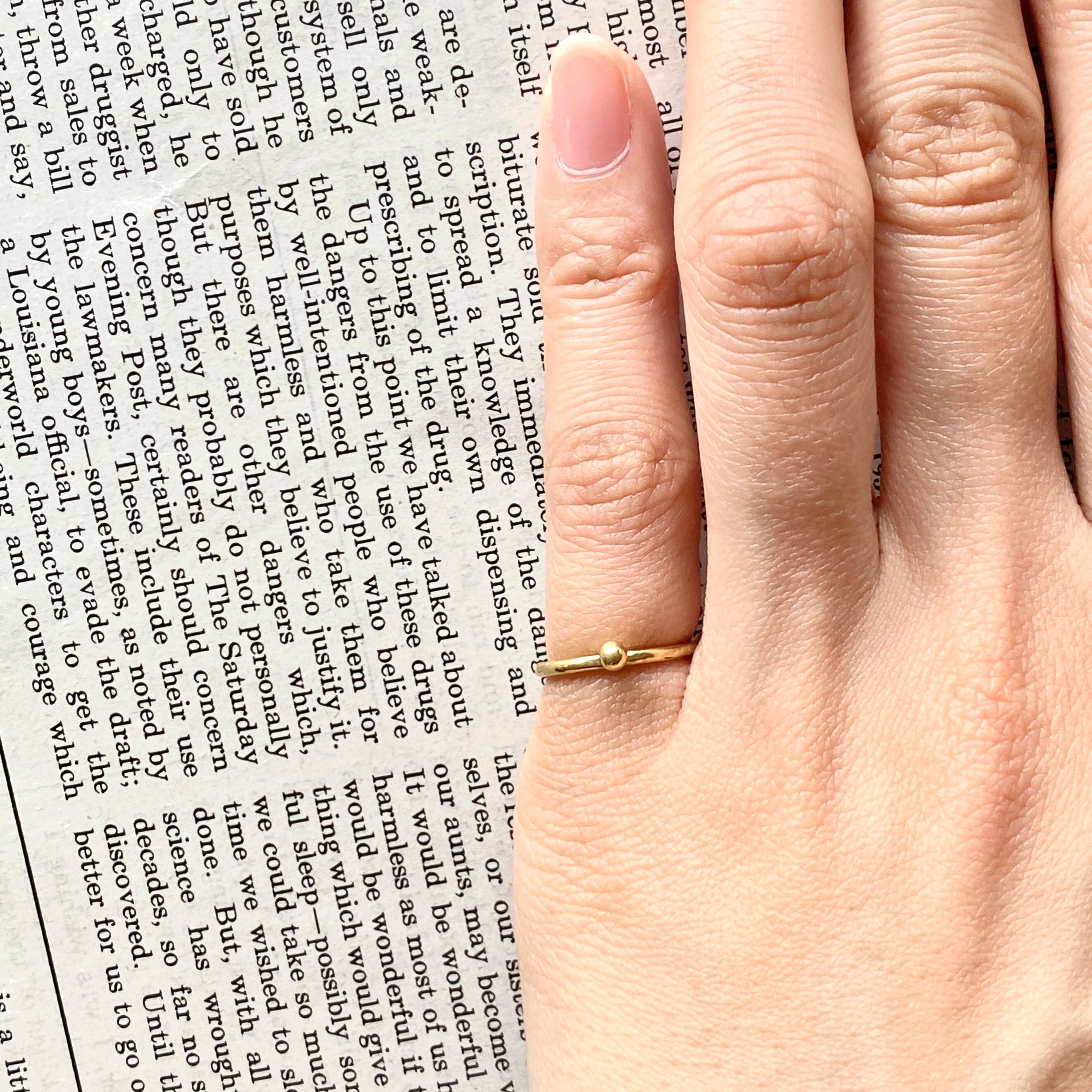 幅1.5mmのピンキーリングに約2mmの真鍮球が施されたリング