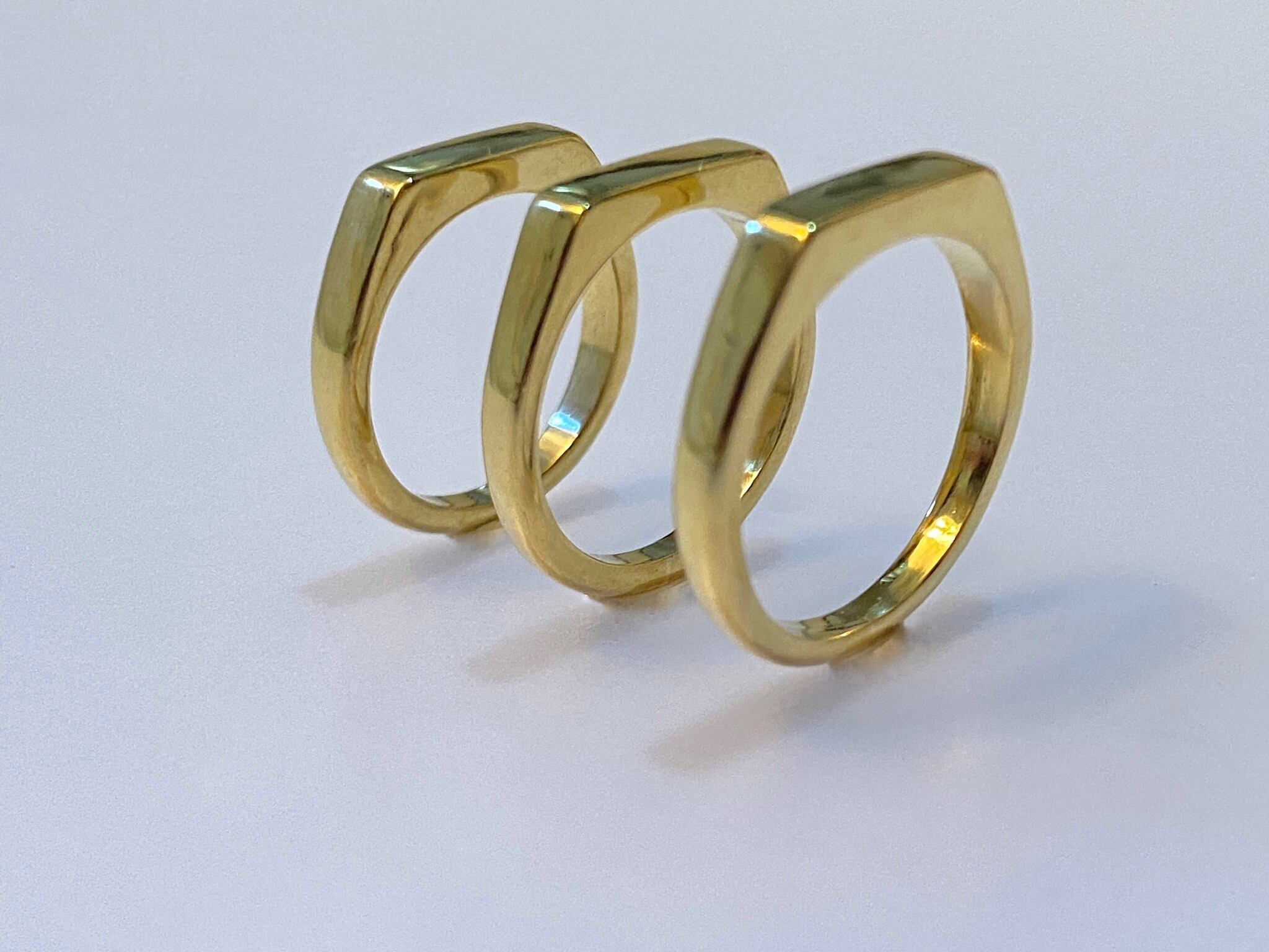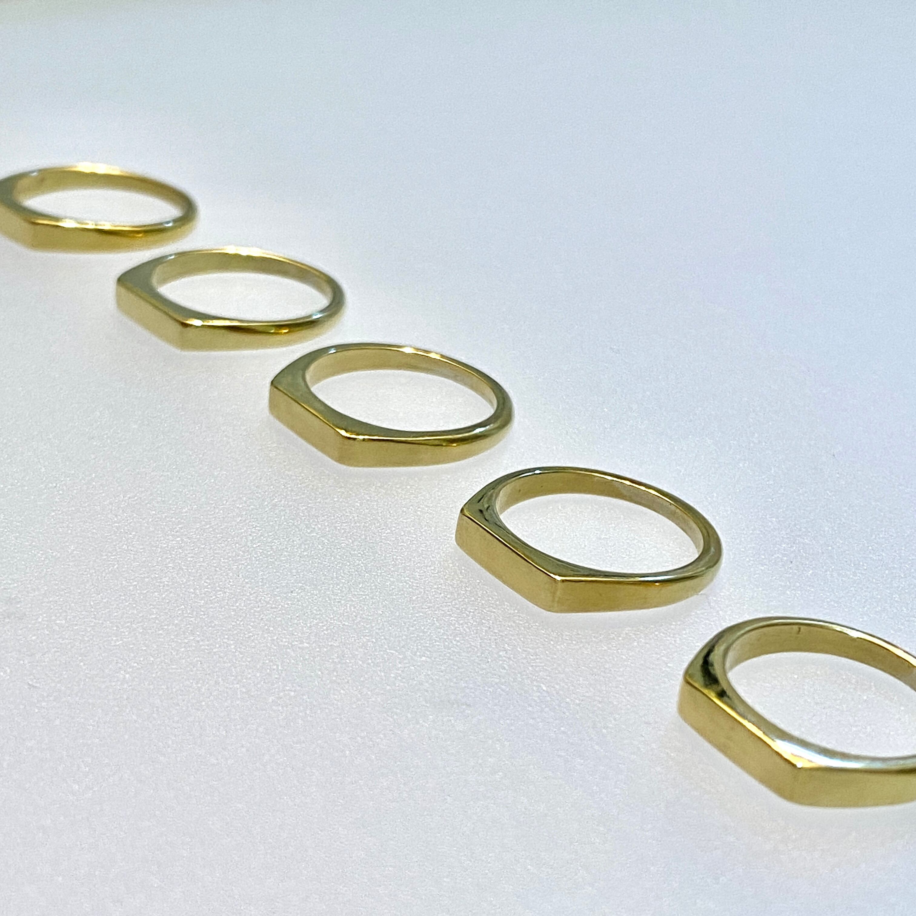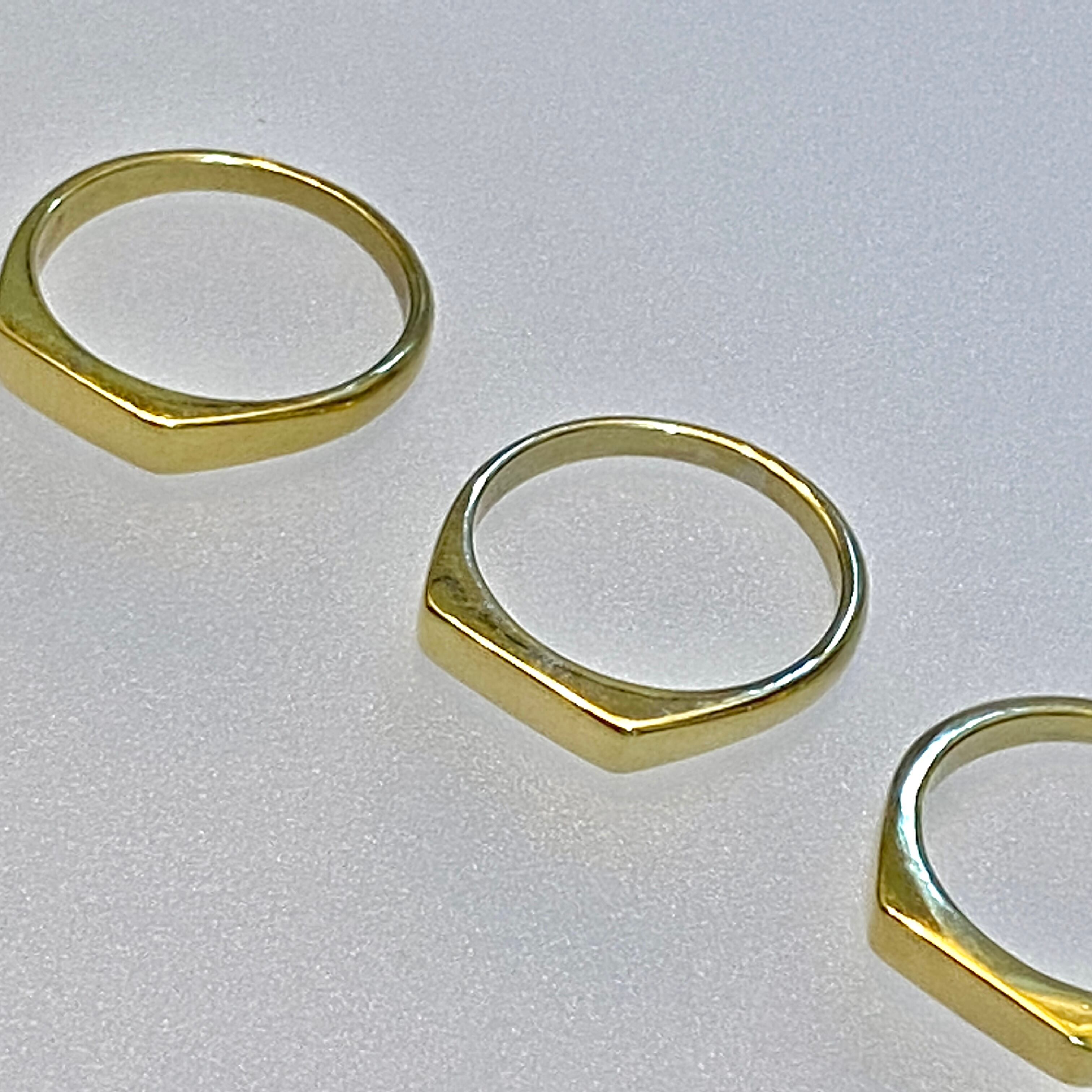 ワンポイントの一部四角いフラット部分がかっこいい印台デザインのリング
