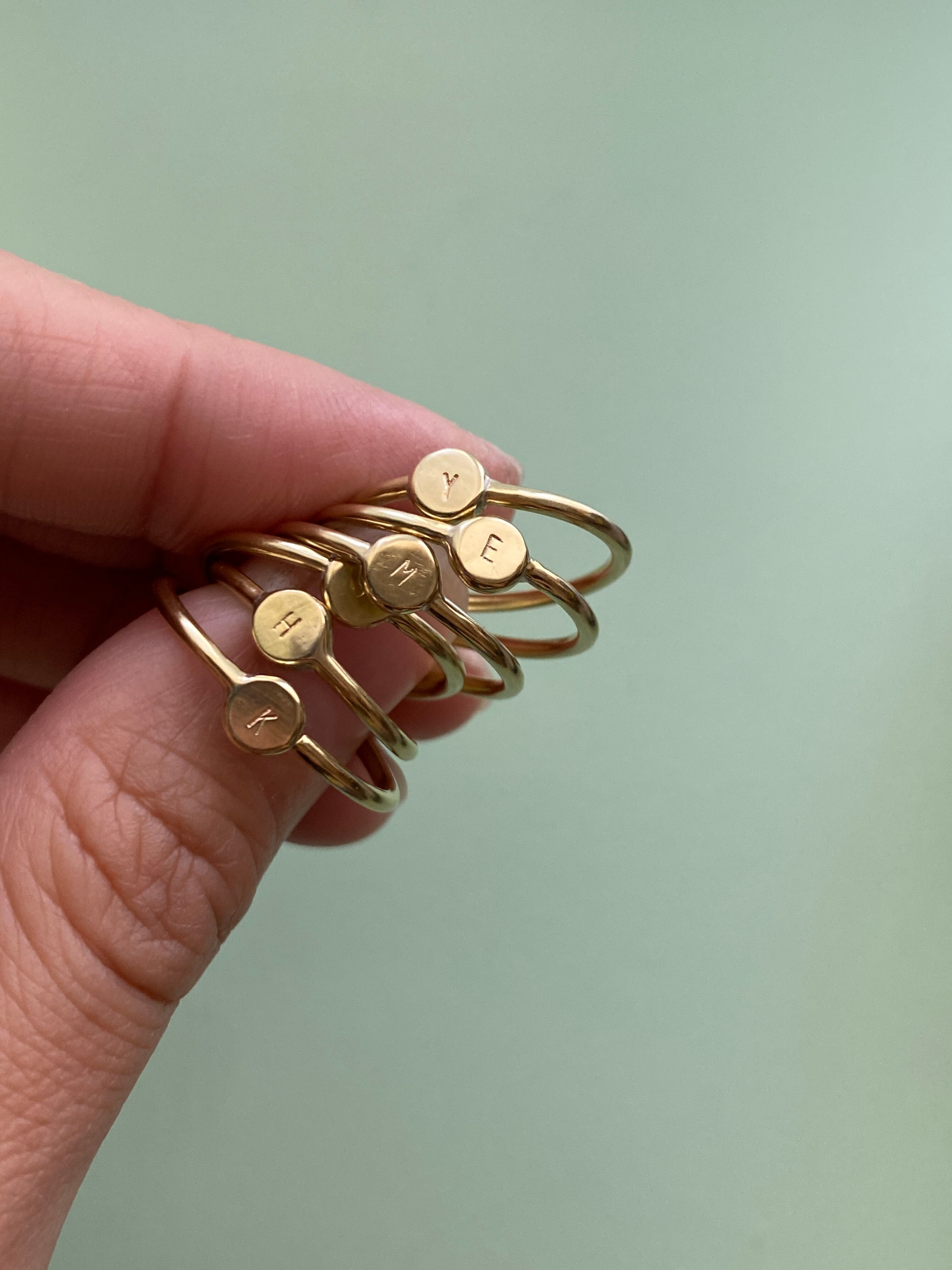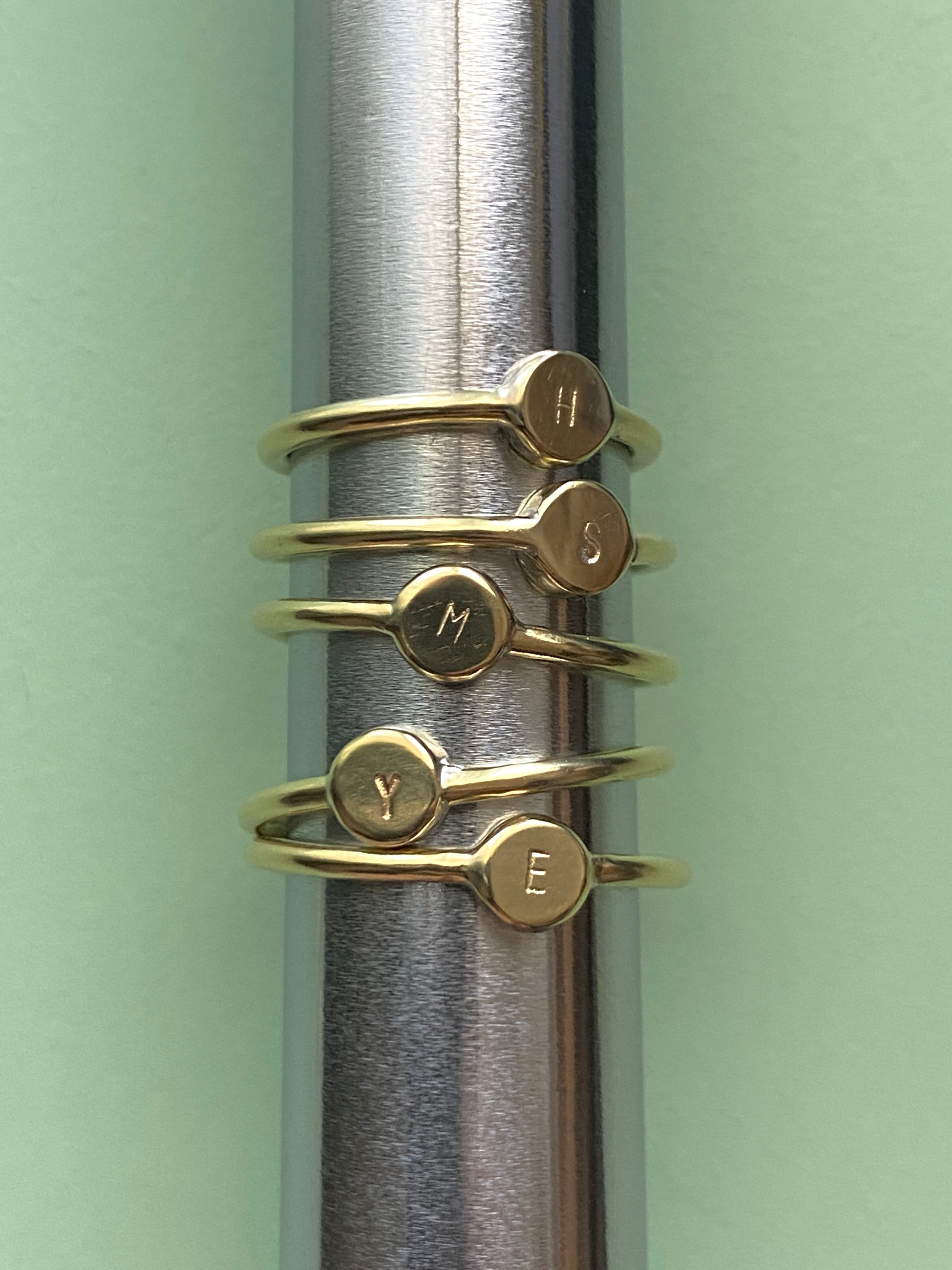 約4mm幅の真鍮に3mmのイニシャル刻印を施しております。