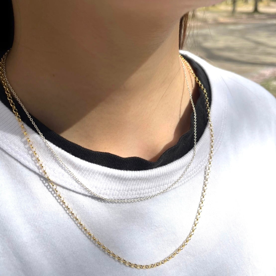 華奢で細身のシルバーチェーンネックレス