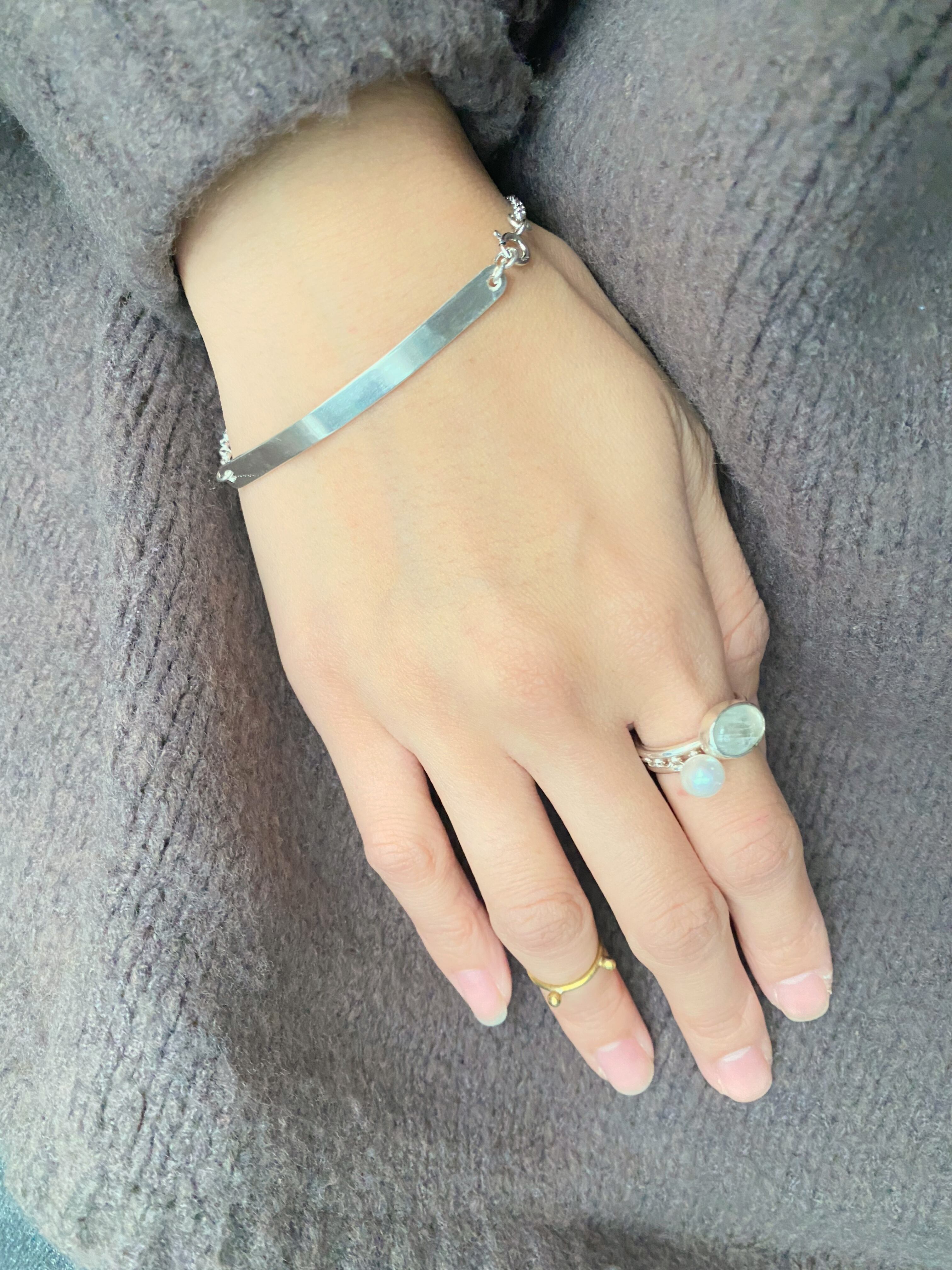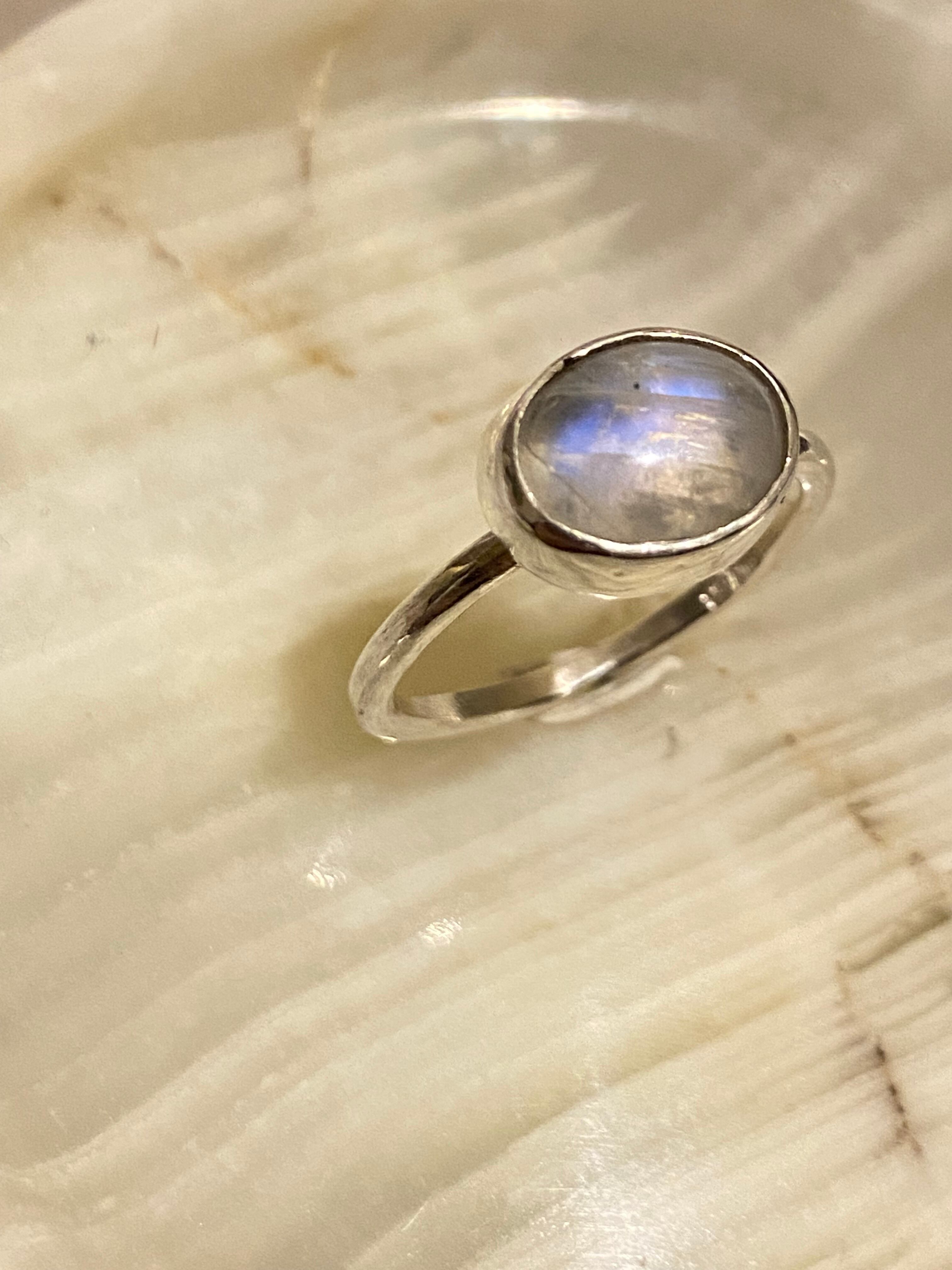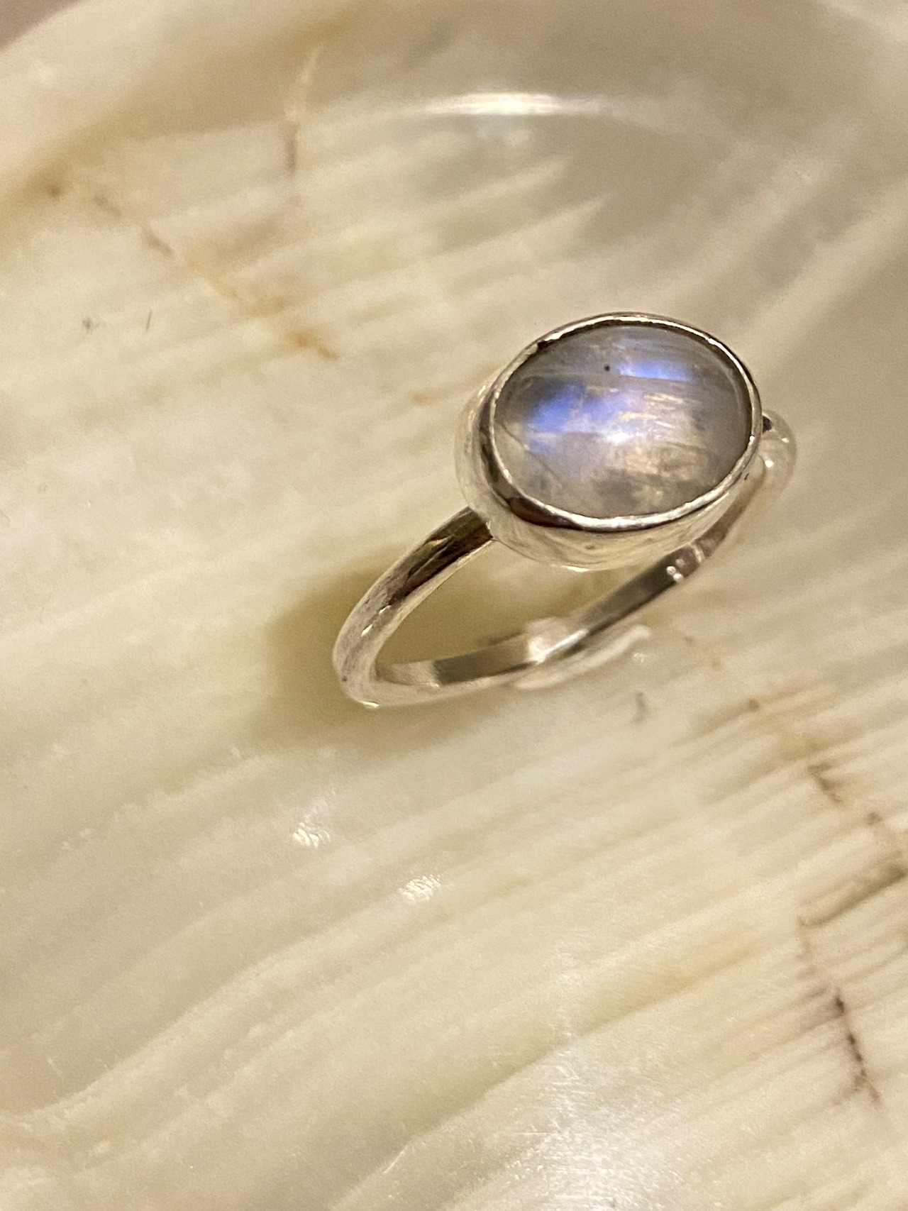 天然のレインボームーンストーンが指先に花を咲かせます。