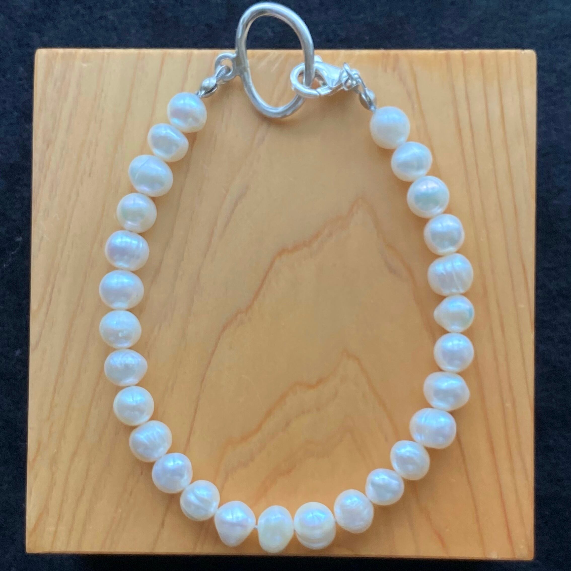 手首を彩る美しいパールが、上品な輝きを放ちます。