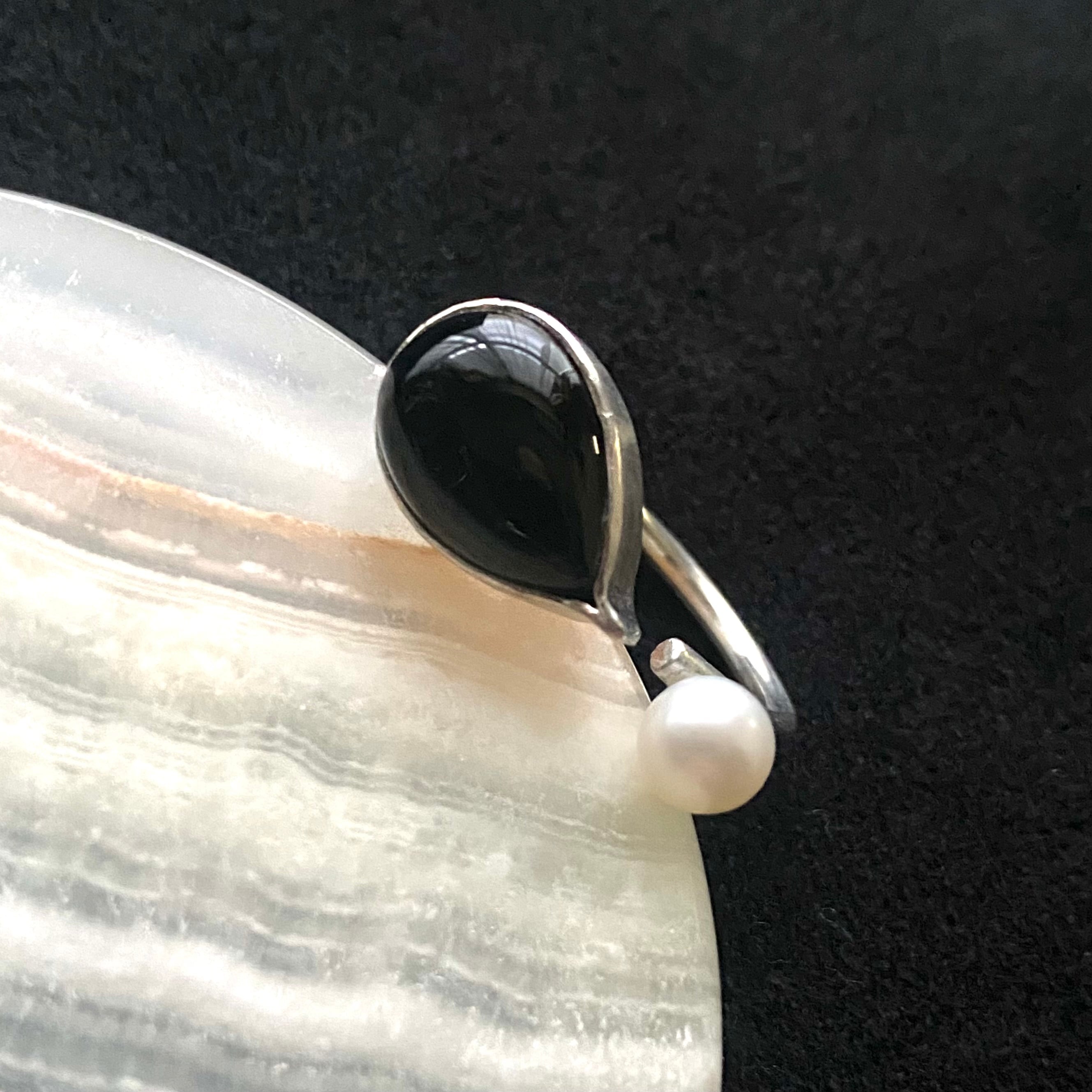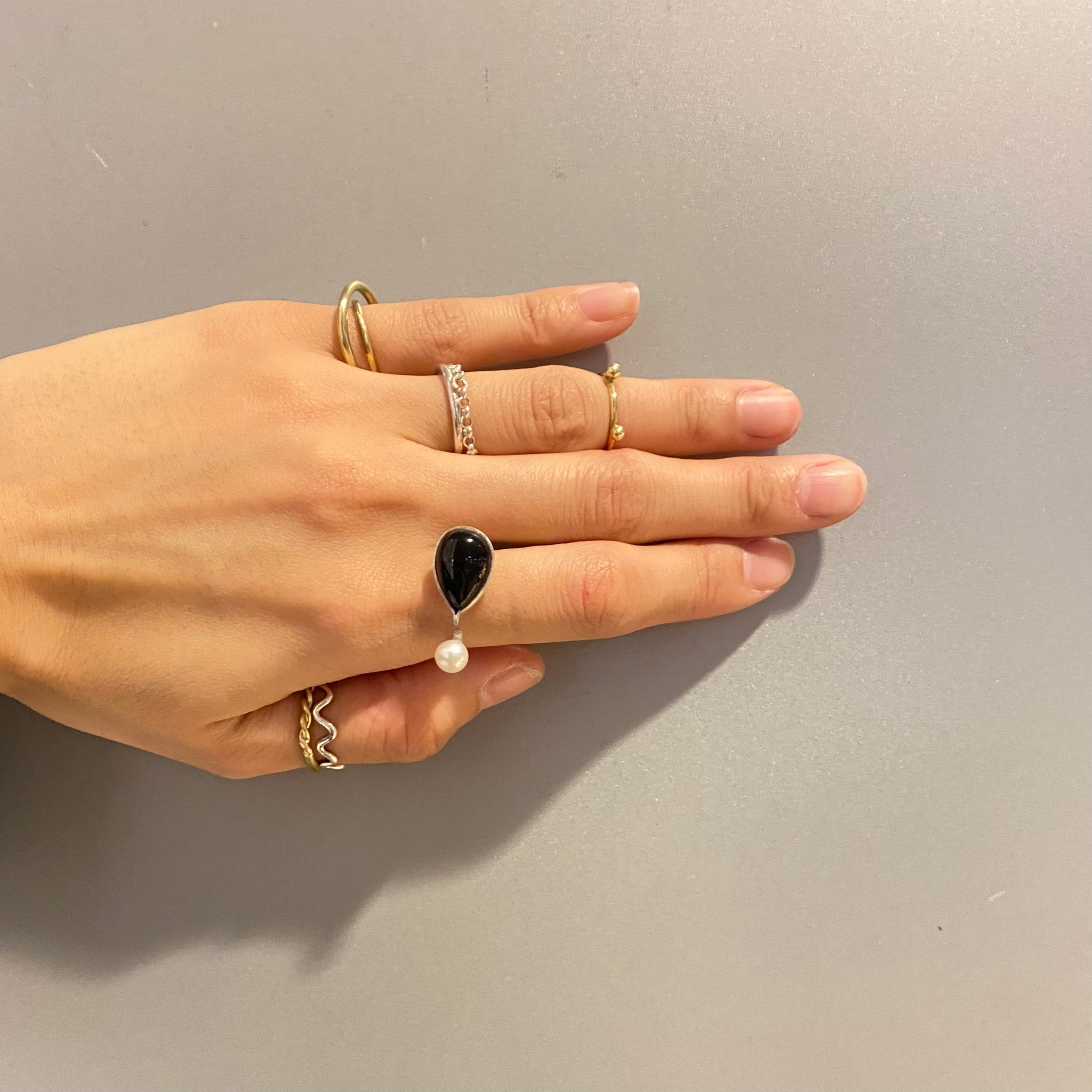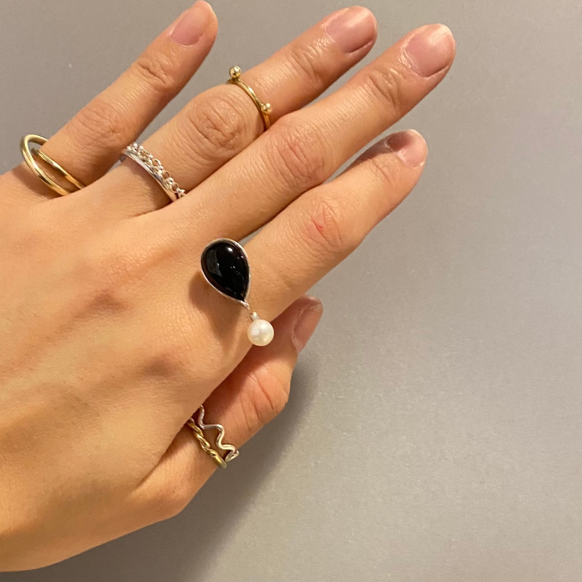 一見 天然石×パールのリングかと思いきや