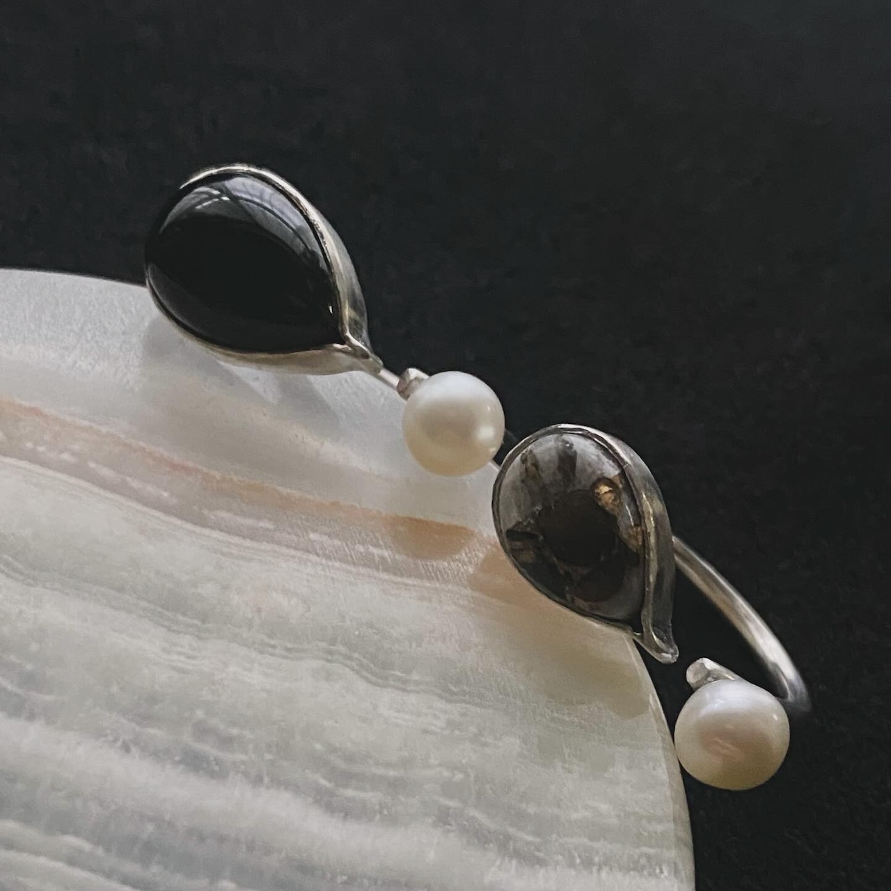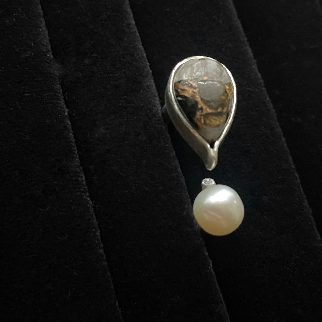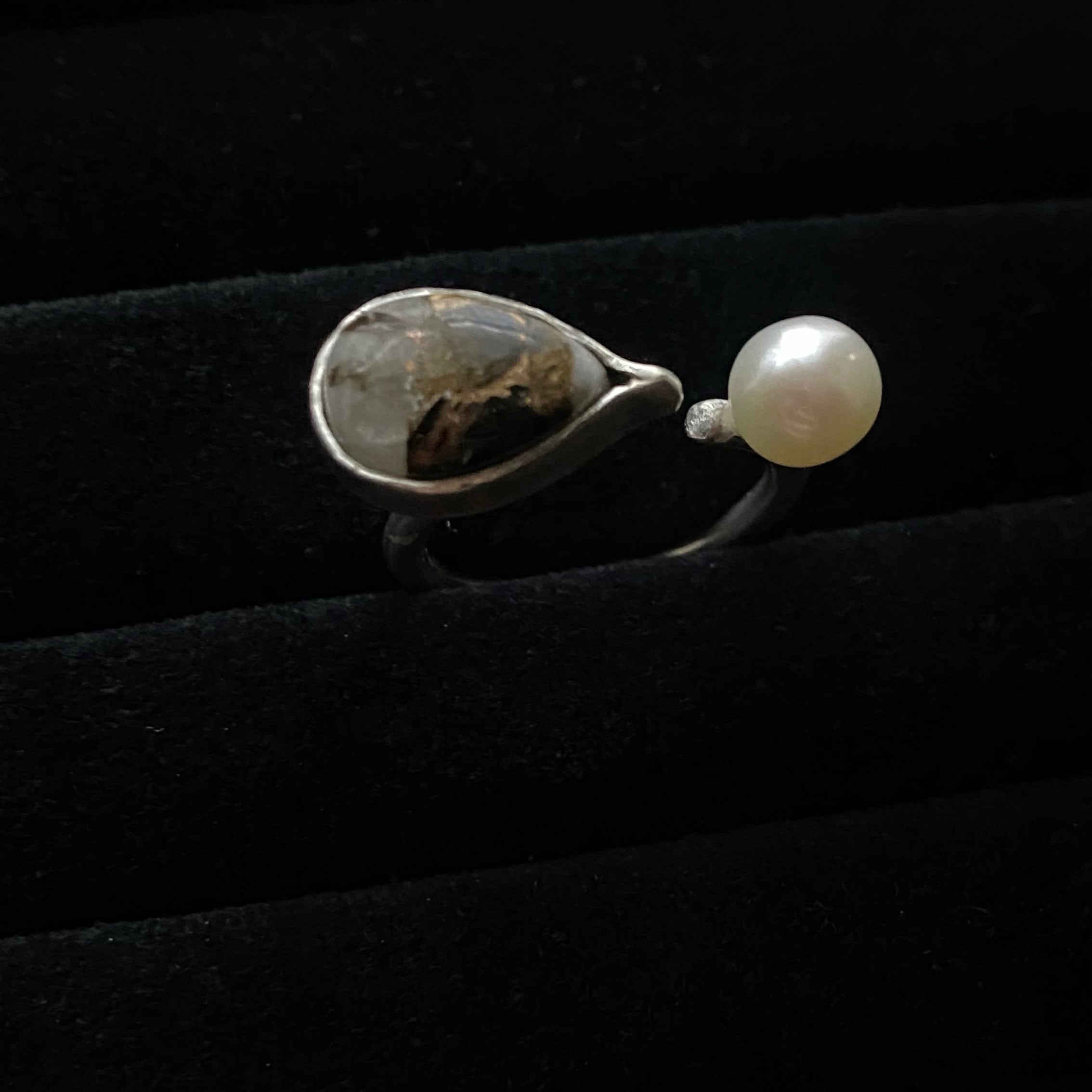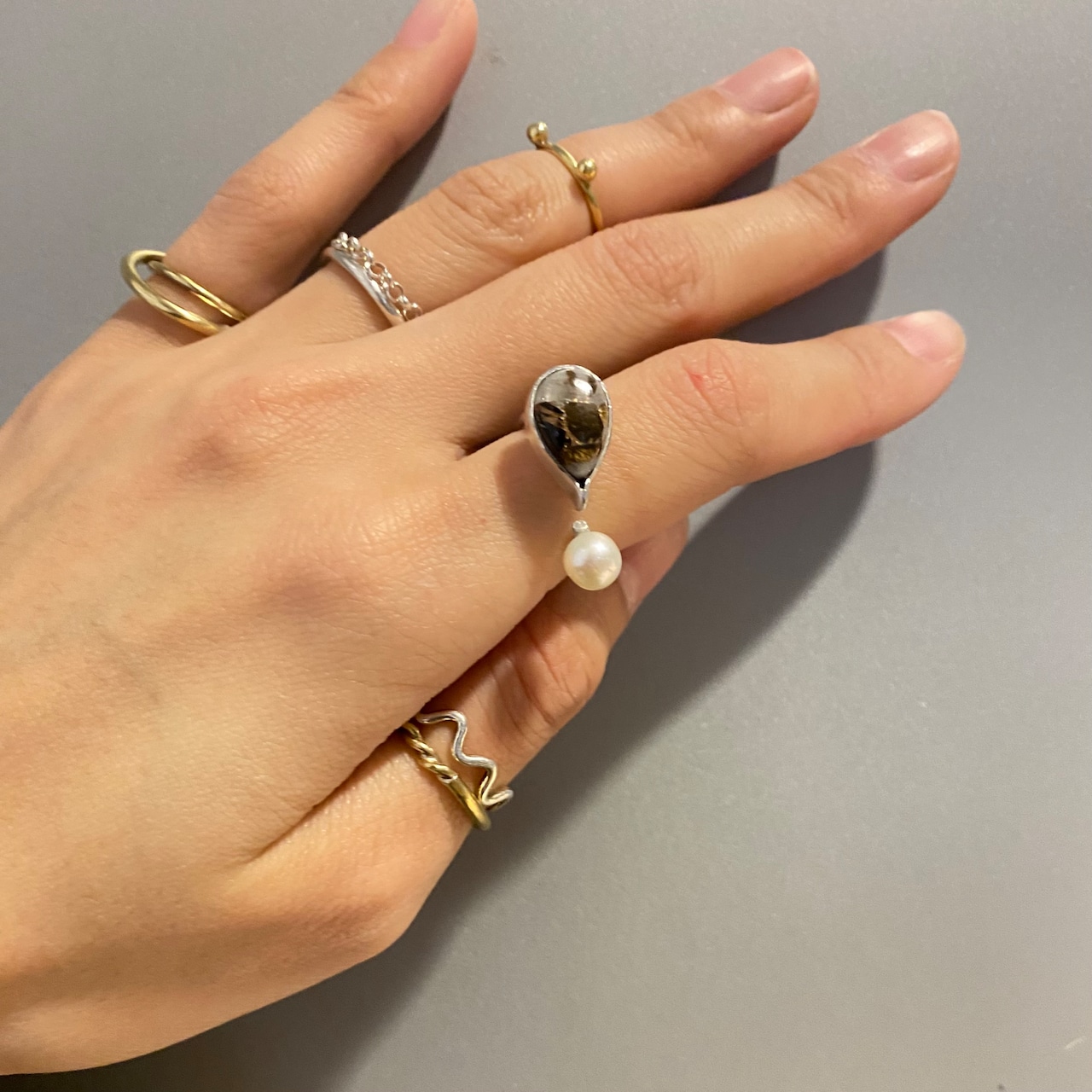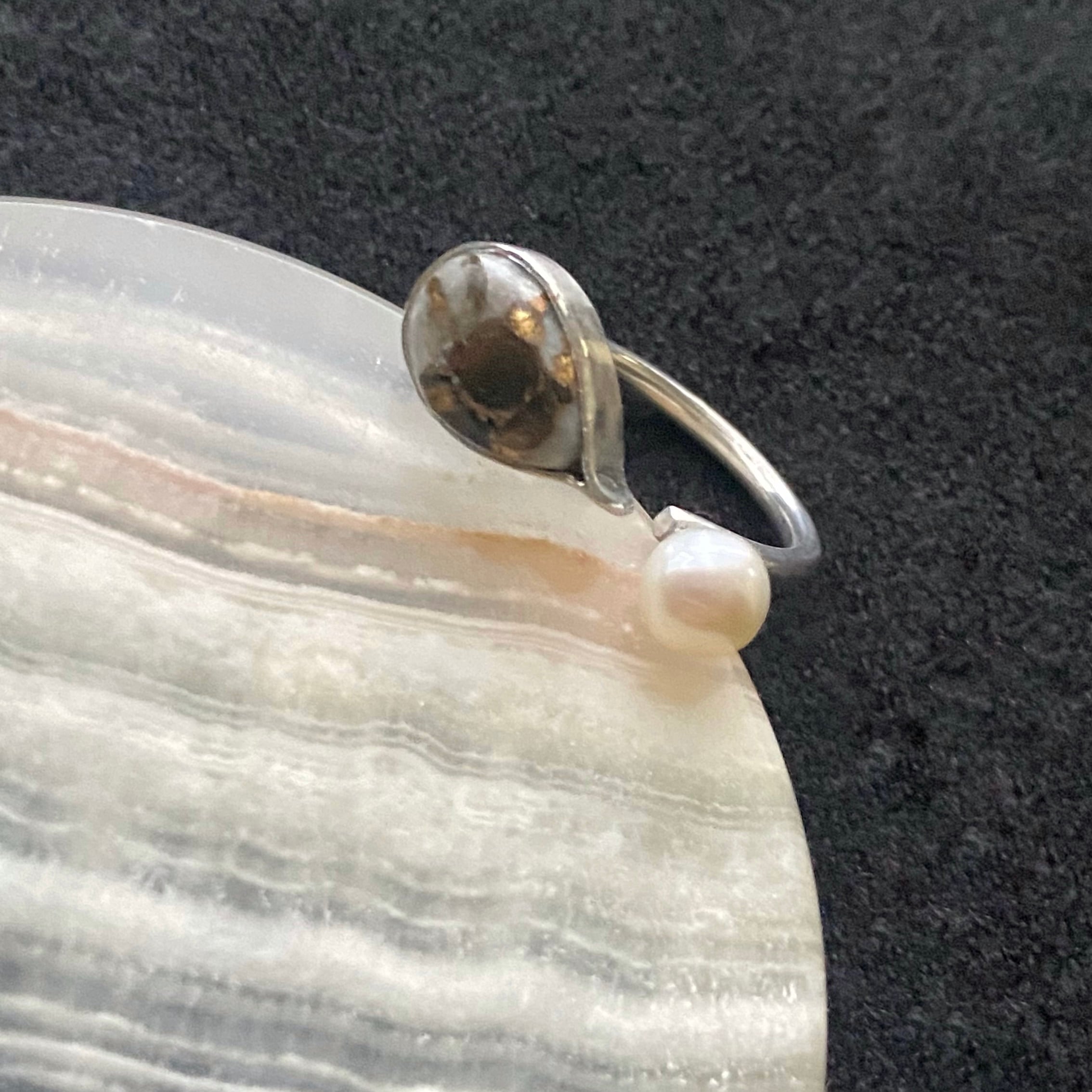 一見 天然石×パールのリングかと思いきや