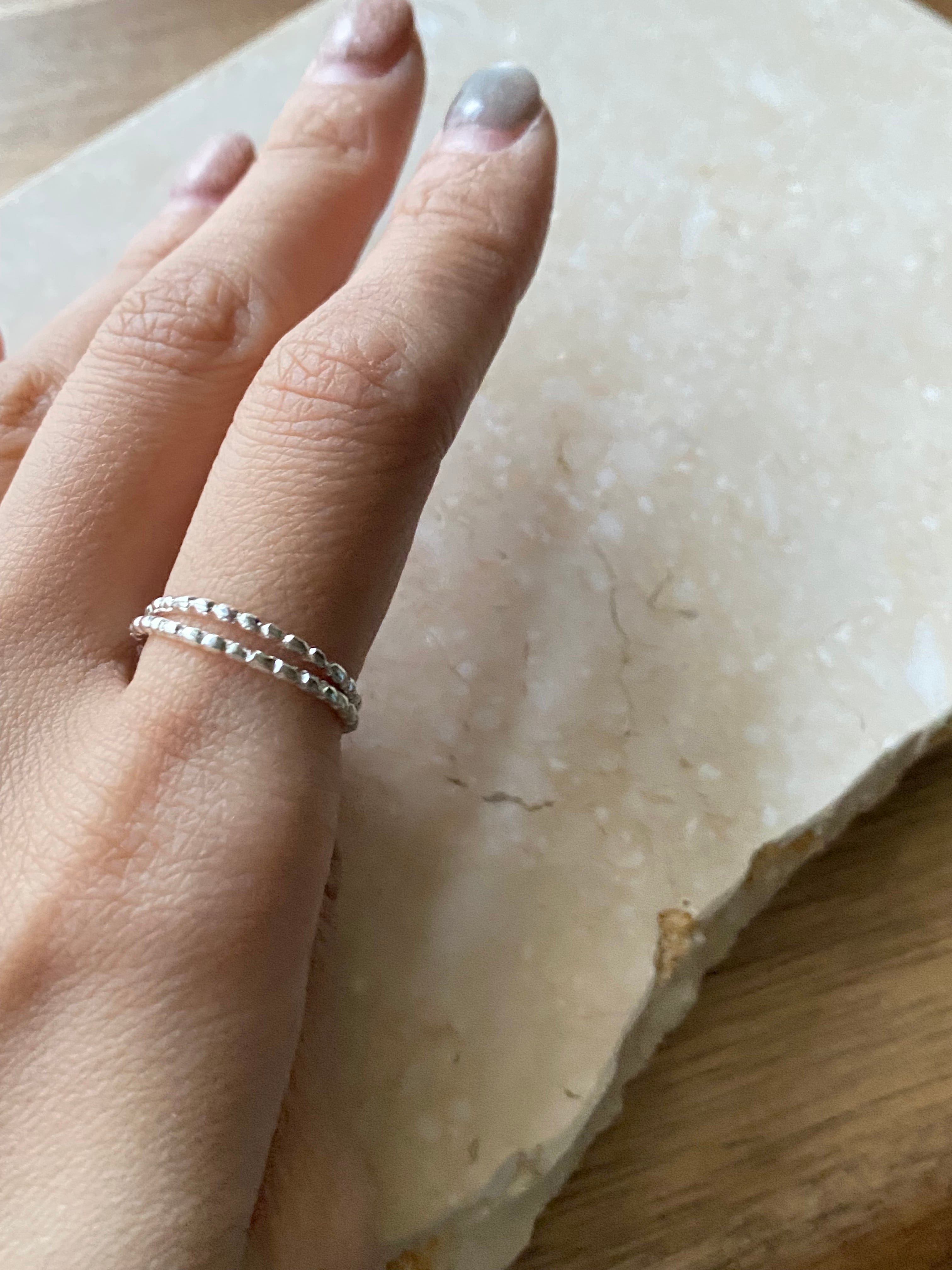 シンプルかつ煌びやで重ね付け万能リング